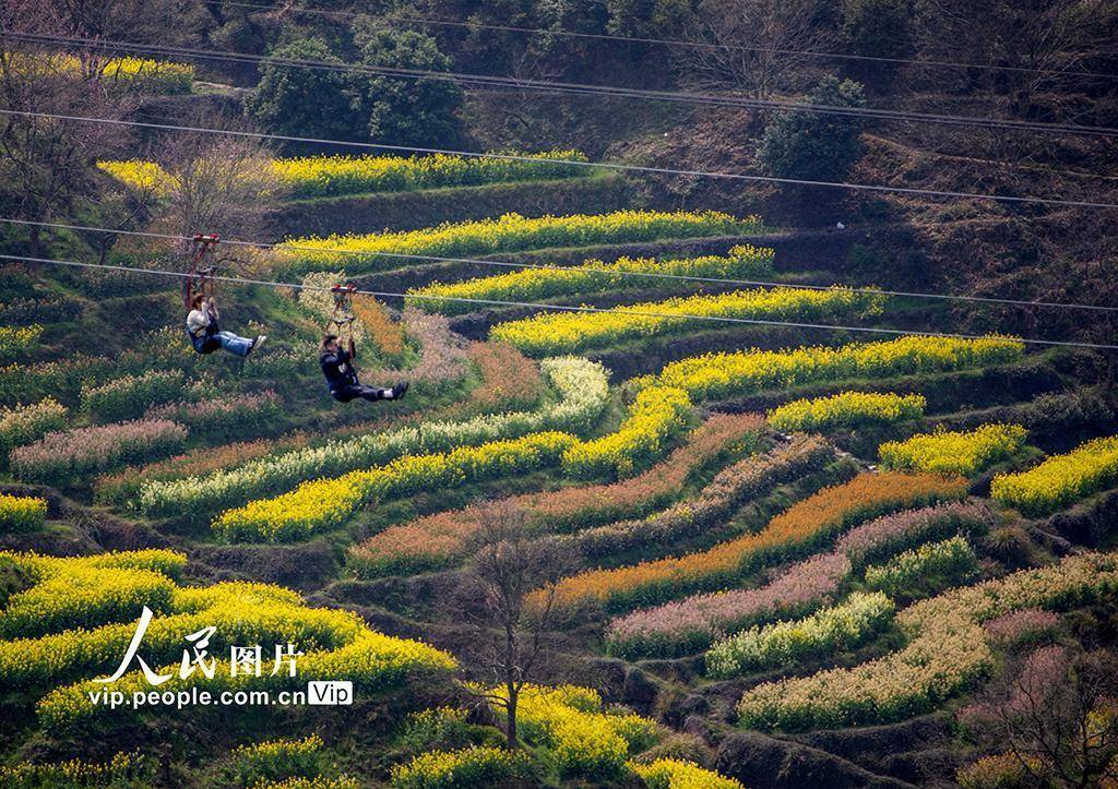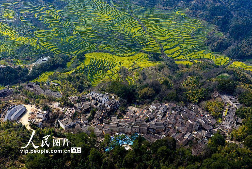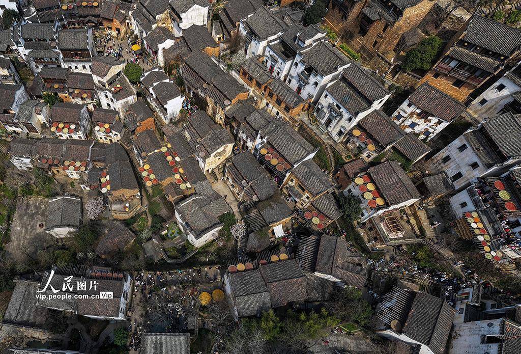 2026年3月15日,江西婺源篁岭景区桃花、樱花、玉兰花与油菜花竞相绽放,与白墙黛瓦的徽派民居交相辉映,勾勒出一幅诗意田园画卷。美景吸引众多游客打卡拍照,大家沉醉在烂漫春光里,构成春日里一道亮丽的风景线。刘国兴摄(人民图片网)