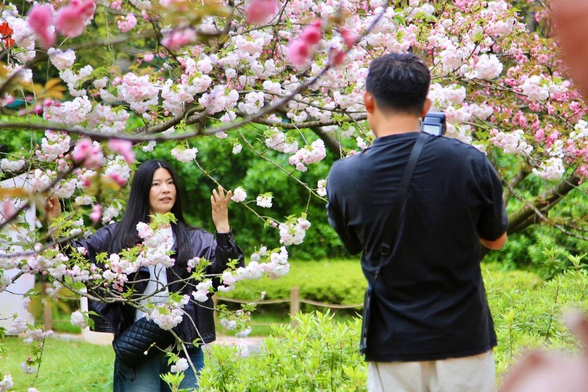 此次晚樱花期持续至4月中上旬,园区每日7时至22时开放,打造日赏繁花、夜观灯影的体验,还有国风演艺等配套活动。趁春光正好,赴这场暮春樱花之约吧。